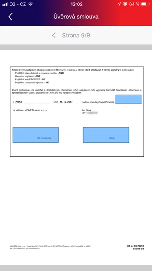 MONETA Auto has prepared for their partners a simple application for biometric signing of contractual documentation and for upload attachments and other documents.
