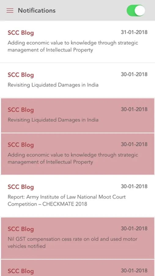 The application now includes a reader for the SCC Online Blog with the ability to receive notifications every time a new article is published. Stay up to date with legal news on the move with the articles published on the blog. This feature does not require a subscription to SCC Online.