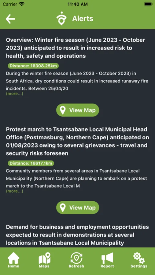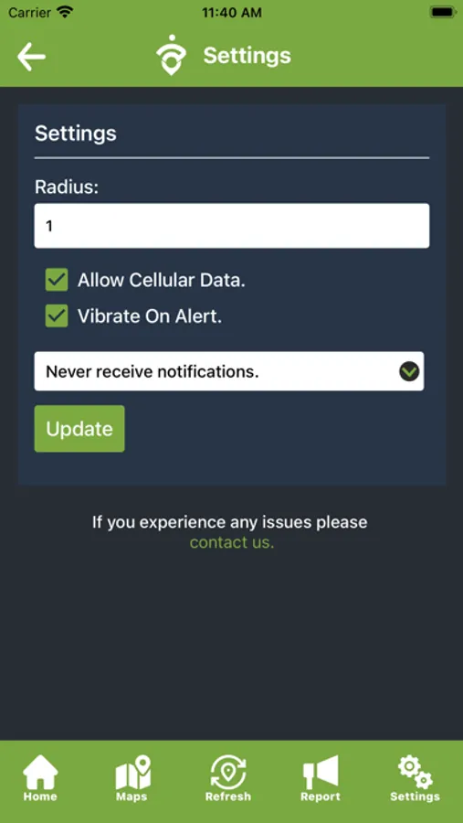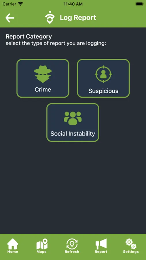 Should the user come across an event or incident about which they would like to notify TopicWorx the app has a facility to do so.