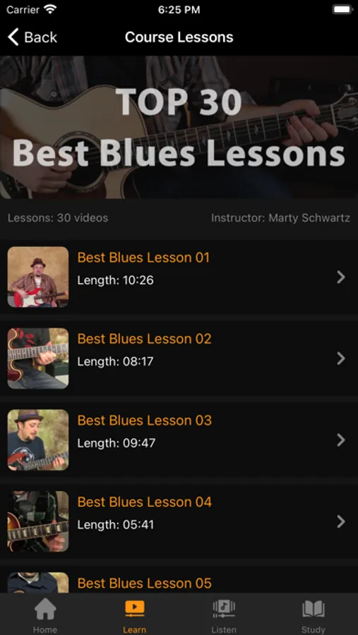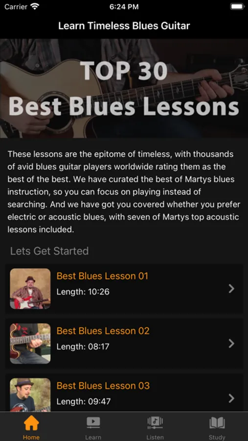 Say goodbye to endless searches and annoying ads. We've curated the best of Marty's blues instruction, so you can focus on playing instead of searching. And we've got you covered whether you prefer electric or acoustic blues, with seven of Marty's top acoustic lessons included.