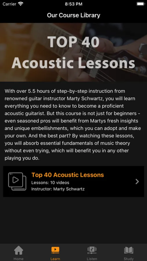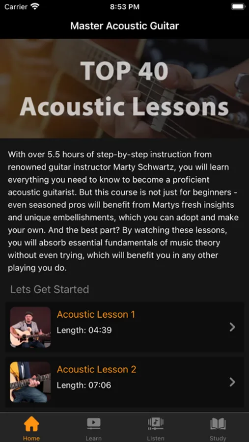Introducing Top 40 Acoustic Lessons - the ultimate guitar course designed for both beginners and intermediate players. With over 5.5 hours of step-by-step instruction from renowned guitar instructor Marty Schwartz, you'll learn everything you need to know to become a proficient acoustic guitarist.