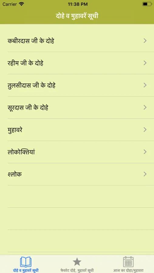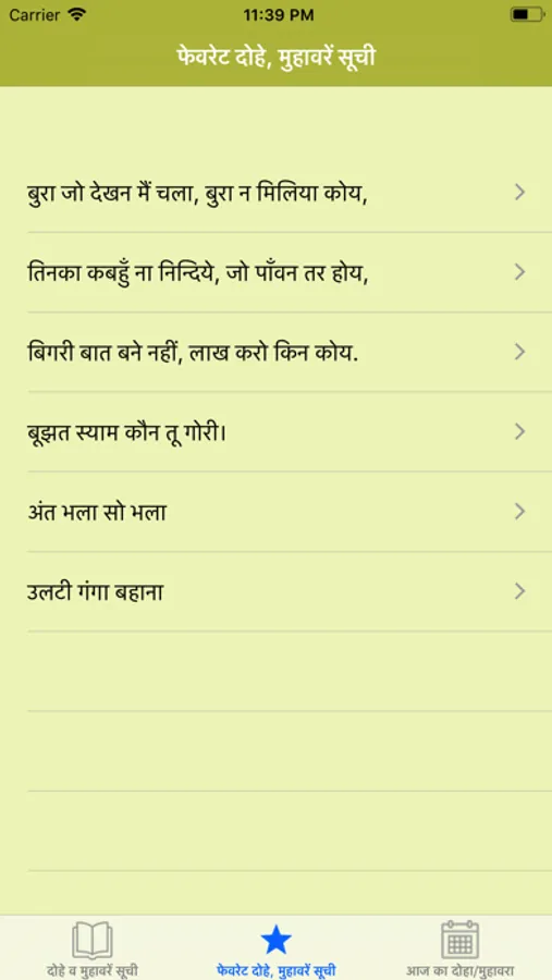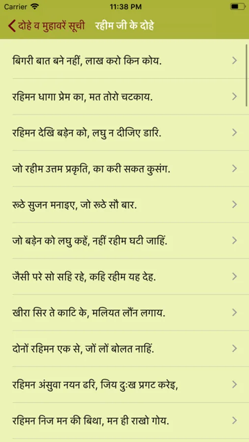 We have collected 1000+ educational doha / dohe from famous poets and saints, muhavare मुहावरा [idioms] and Lokoktiyan लोकोक्ति [Proverbs] with Meaning and example in this app.