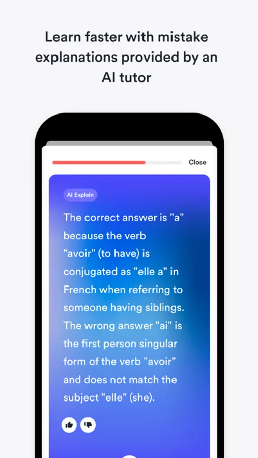 AI Coach offers detailed explanations on the questions you get wrong so that you can learn from your mistakes and improve faster.