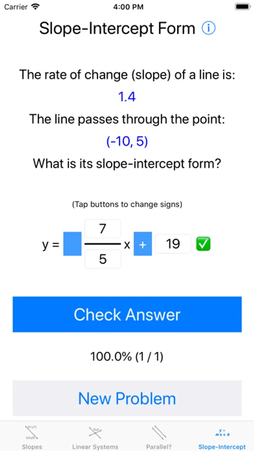 This app is like having an infinite set of flashcards for algebra problems. It helps students practice algebra skills with instant feedback. Four tasks are currently available: