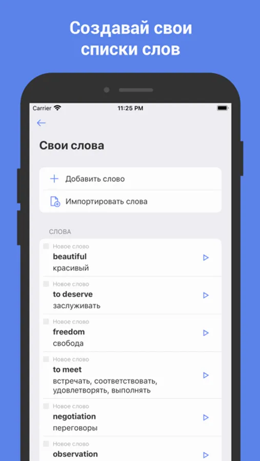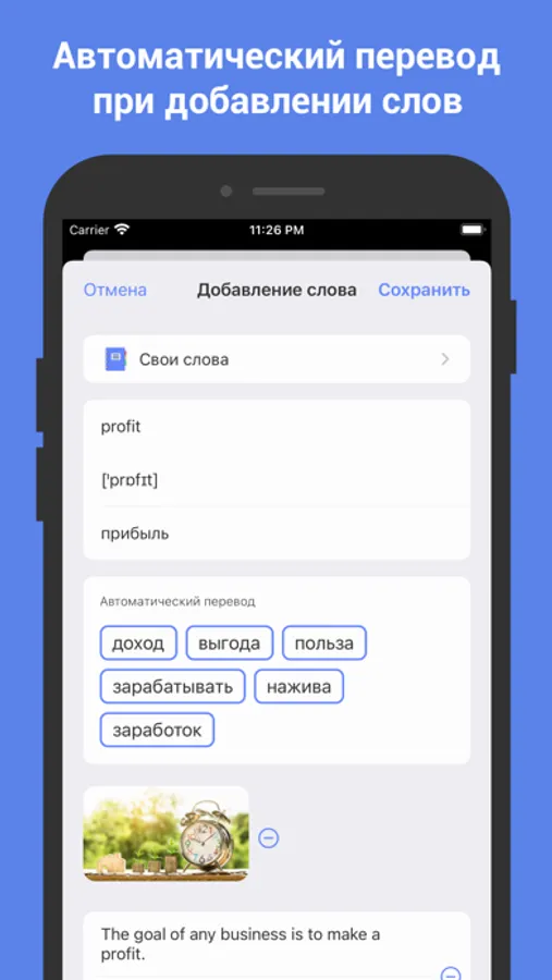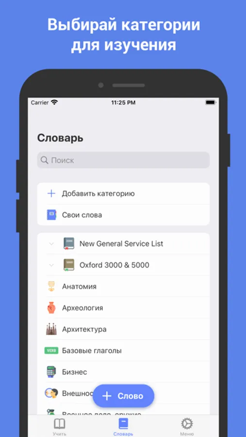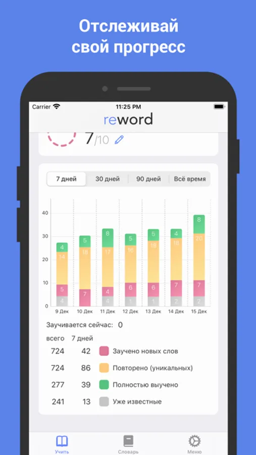 • Statistics: track your performance in learning English words for the last week, month, three months and the last year.