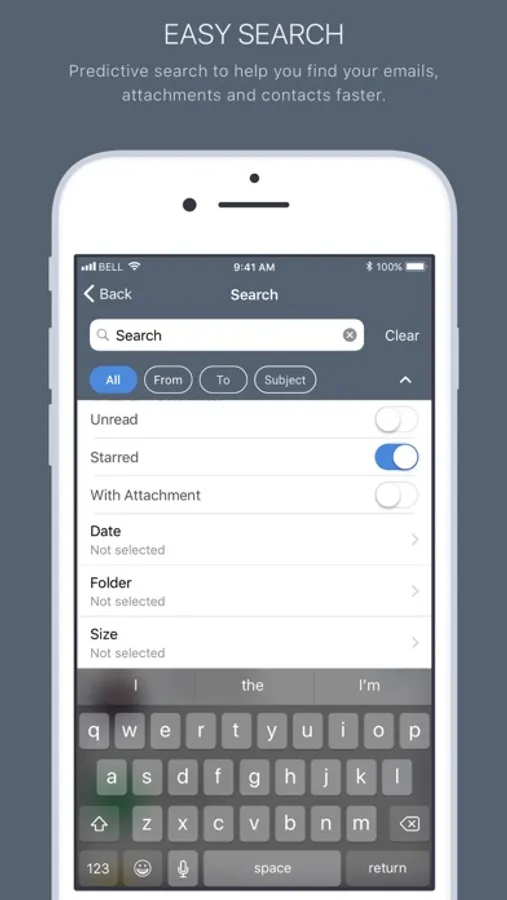 Smart Search – Powerful predictive search allows you to find any email, contact or attachment quickly and accurately from all accounts whether it’s stored locally or on the server.