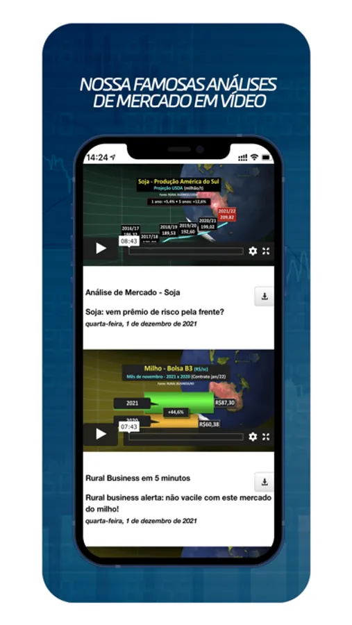 Aplicativo oficial da Agência de informações estratégicas para o agronegócio RURAL BUSINESS - aumente já a sua capacidade de lucrar no agronegócio com informação profissional de mercado e diária para os mercados de soja,milho e boi.