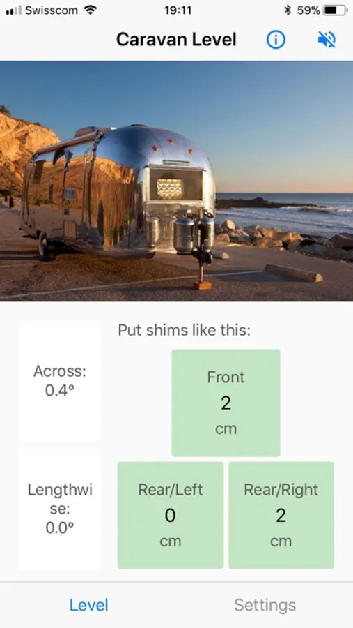 You are in the 21st century and you have all the rights to impress your pitch neighbor. With "CaravanLevel" you know instantly how high the blocks have to be for every wheel. In a sweep you're done and the relaxation begins!