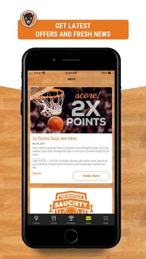 Earn rewards at Buffalo Wings & Rings when you join the Sauciety! Through the app, you’ll have the ability to track your purchases, place orders online, access special offers, view locations and more.