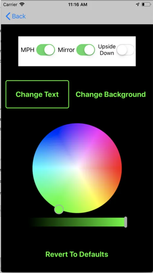 Place the iPhone on your dashboard, below your windshield, with the bottom of the device facing away from you. Your current speed(mph) and direction will be reflected onto your windshield. You can also tap the screen to toggle between a mirrored and un-mirrored display. Additionally, you can tap the MPH/KPH button to switch between miles-per-hour and kilometers-per-hour
