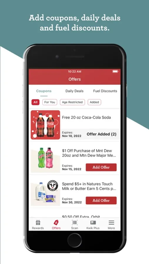 Add coupons to your card, discounts apply automatically after the transactions has completed.