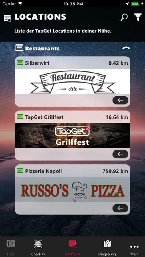 Die neue TapGet App. TapGet Restaurants in Ihrer Nähe.