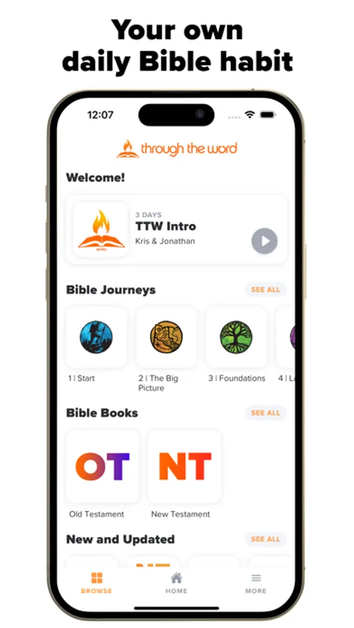 New to the Bible? Try the 25-day “Start” journey. Been reading for a while now? TTW has more than 1200 audio guides covering every Bible chapter, with insight and application for every level.