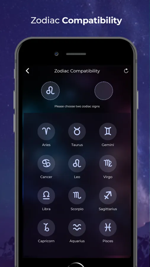This app provides a compatibility test based on the zodiac signs for Aries, Taurus, Gemini, Cancer, Leo, Virgo, Libra, Scorpio, Sagittarius, Capricorn, Aquarius and Pisces.