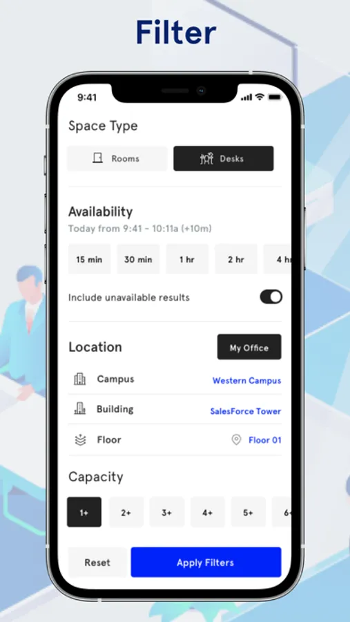Quickly find exactly what you’re looking for. Whether it’s something nearby, a frequently used space, or a room with a whiteboard, quickly find the spaces that are most relevant to your needs.