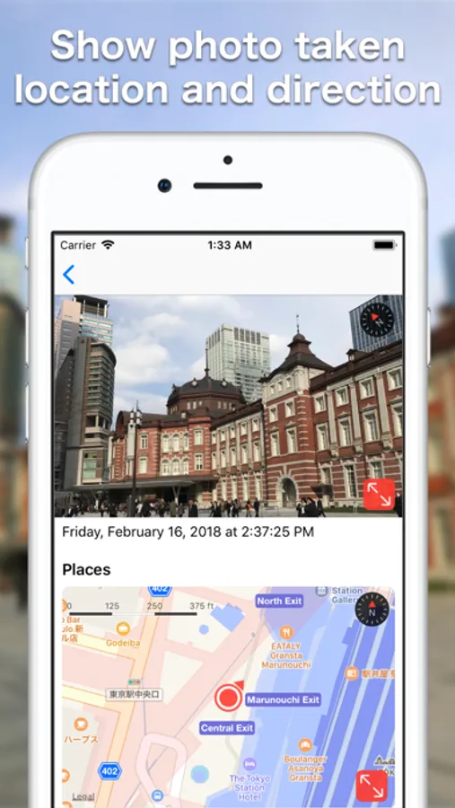 By reading the location information (GPS tag) recorded in the photo and simultaneously displaying the directional photograph and the map, you can easily grasp the positional relationship at the time of shooting.