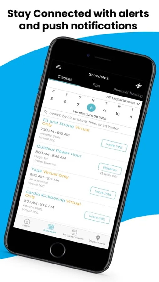 Reserve your spot in group exercise classes and manage training and spa appointments.