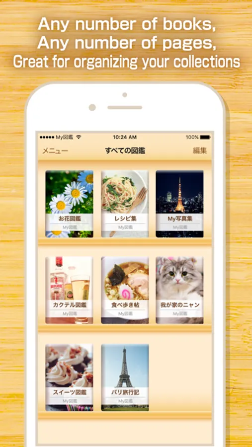 'My Dictionary' is the best application to manage the collection of all hobbies such as animation goods, books, CDs, DVDs, classic watches, movie brochures and posters. All you need is a photo of the item and a text. You can organize your collection like a visual dictionary. From stamps and tickets to anime goods such as figures, manhole covers, Buddhist statues and castles, gather your own collection using 'My Dictionary', a powerful collection management application developed and trained in Japan, a country with many geeky collectors.