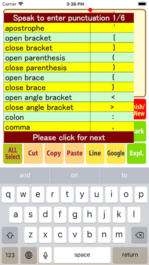 The questions are arranged from simple sentences to complicated sentences so that users can understand the essence of this app. Further, users can test how to input punctuation via voice by referring to the table of punctuation.