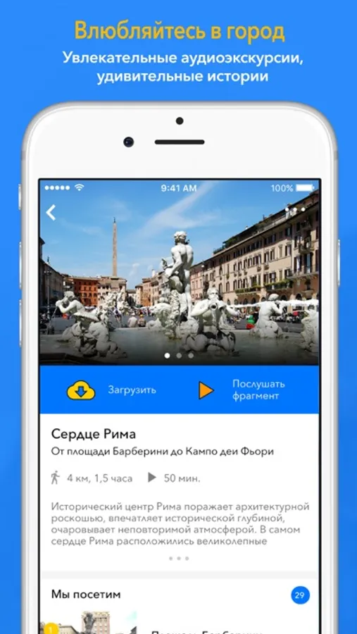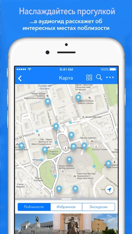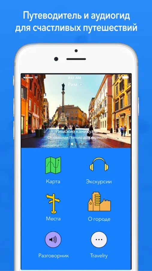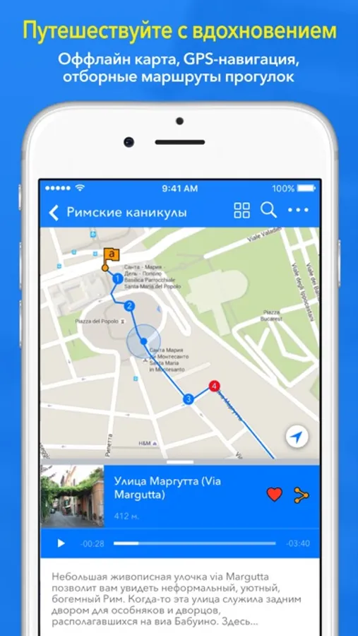 Мы влюблены в Рим и хотим, чтобы Вы тоже его полюбили! С бесплатным GPS путеводителем Вы не заблудитесь в городе, сможете легко найти и изучить интересные Вам места. Ну а если этого Вам мало - открывайте город с увлекательным аудиогидом! И привозите из поездки не только сувениры, но и яркие впечатления.