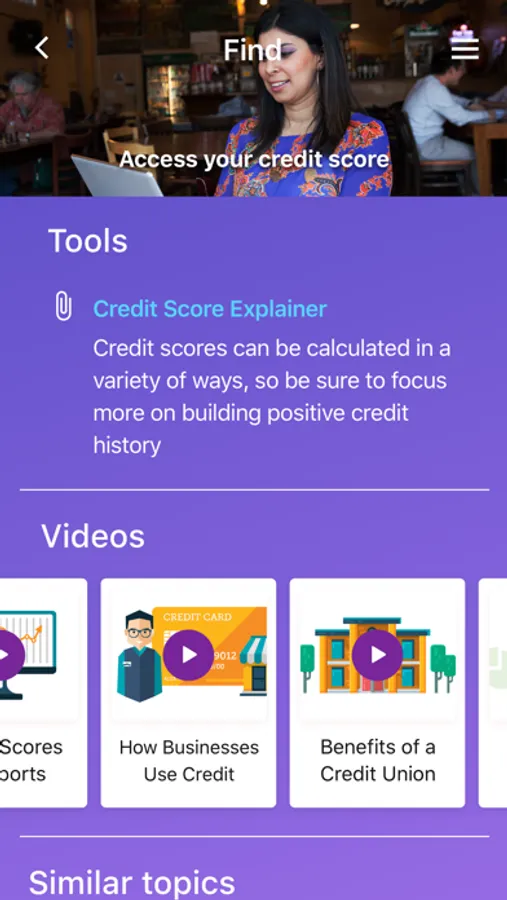 • Trusted financial education content to help you build credit, explore your