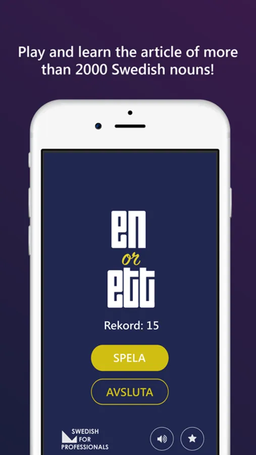 Swedish for Professionals proudly presents En or Ett - the ultimate app for Swedish language learners who want to master the use of nouns and articles in Swedish. If you, like most people who learn Swedish, are finding it hard to remember whether Swedish nouns are “en” or “ett” words - this game is for you! We know that learning which nouns have the “en” or “ett” article can feel almost impossible. We also know that you develop a feeling for what is what really fast by practicing, practicing and practicing some more. By playing the “En or Ett” game you will quickly develop the skill of telling them apart. Download the app now and challenge yourself!