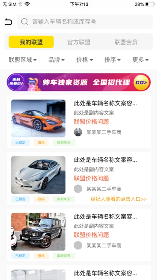 帅车联盟是由杭州帅车网络科技有限公司推出面向二手车商的服务软件。旨在通过提升二手车商的收车效率、降低经营成本、打通车商库存共享等服务,提升二手车商的经营能力,目前功能涵盖值新车源批发、二手车商联盟库存共享、车商内部库存管理等功能