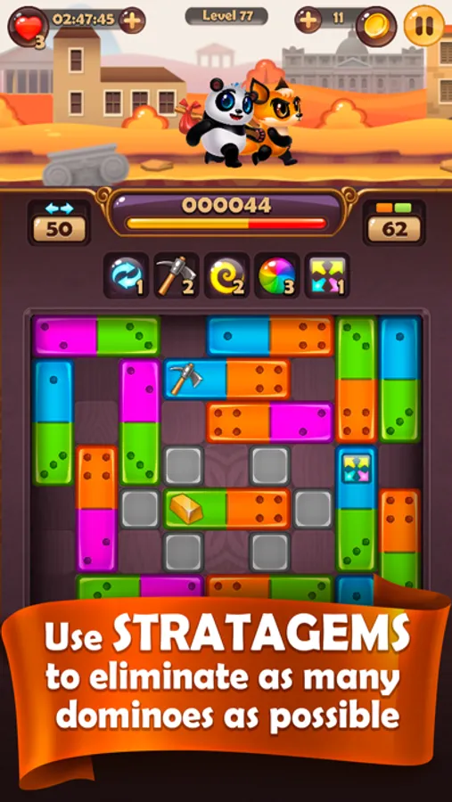 Join Pandamino and Foxy on their trip around the world, you will have to solve challenges,explore many places to fill your bag of lost dominoes belonging to your family.