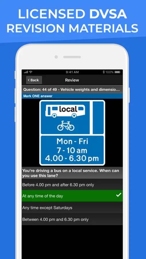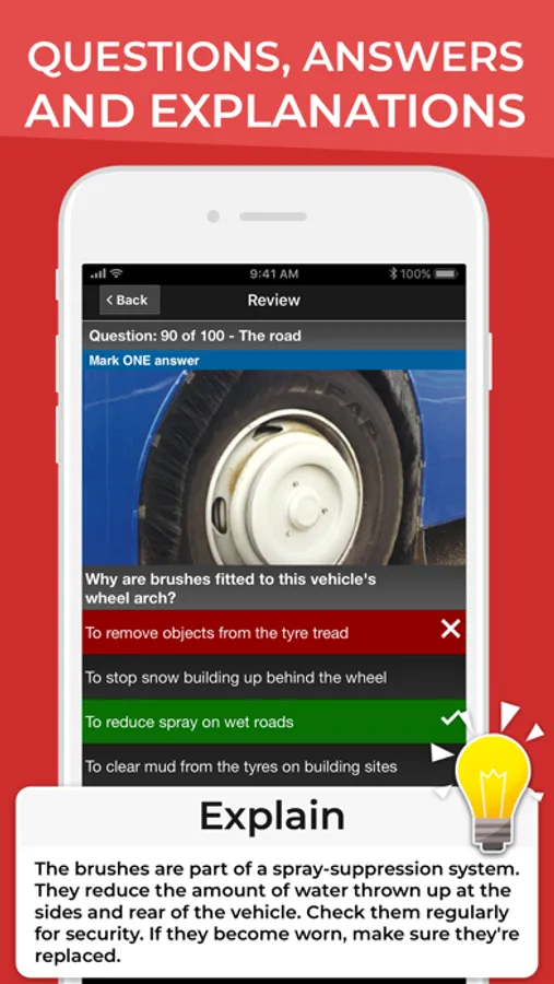 Test your knowledge by practicing by categories. You can select one or more categories to practice. You can also perform rapid tests for 10, 20 or 30 questions. In this section there is no time limit and you can see the explanation of the DVSA before selecting the correct answer.