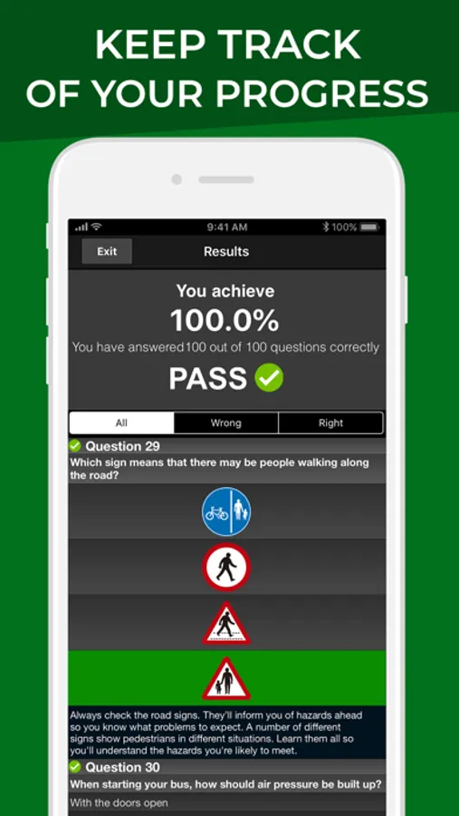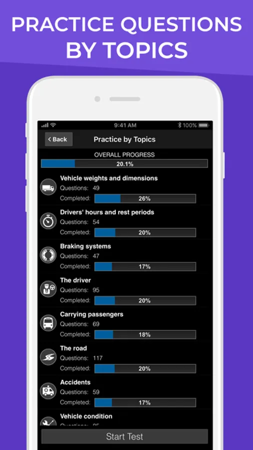 - Track and monitor your progress. Analyse your performance and find out when you have reached test standard.