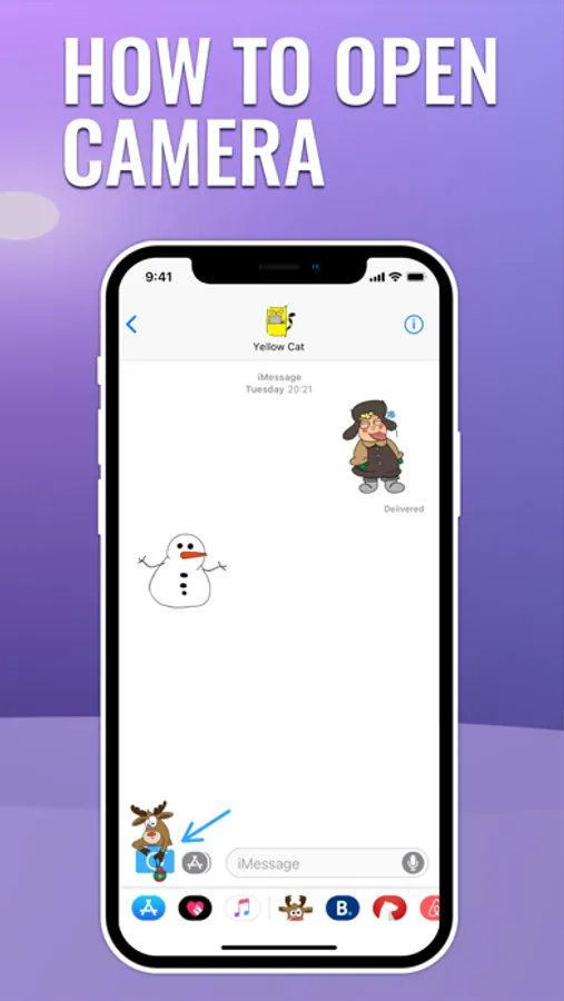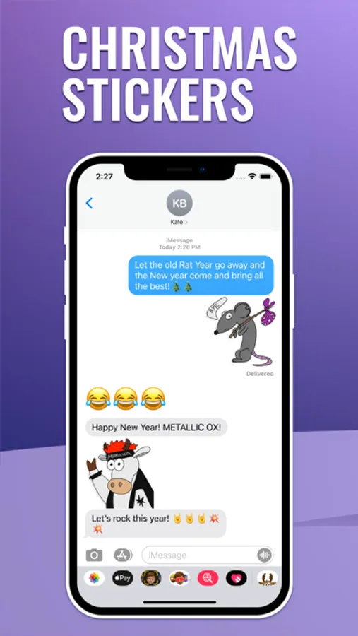 Christmas sticker pack is special created for iMessage, you can send it individually as a message or drop it onto sent iMessage. Or maybe you want to add it to your camera? Just press the camera bottom in your imessage and add a sticker just to the photo.