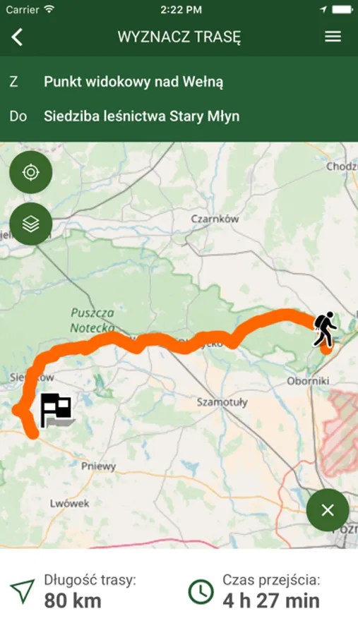 Najważniejszą funkcją aplikacji jest nawigacja w sieci szlaków udostępnionych przez nadleśnictwa: będąc w trybie offline wyznaczymy trasę z jednego punktu do drugiego, cały czas bezpiecznie poruszając się po wyznaczonych szlakach i ścieżkach. Mamy do dyspozycji szlaki rowerowe, Nordic Walking, a nawet konne. Lokalizacja GPS pozwoli nam na dokładne zbadanie ostępów Puszczy.