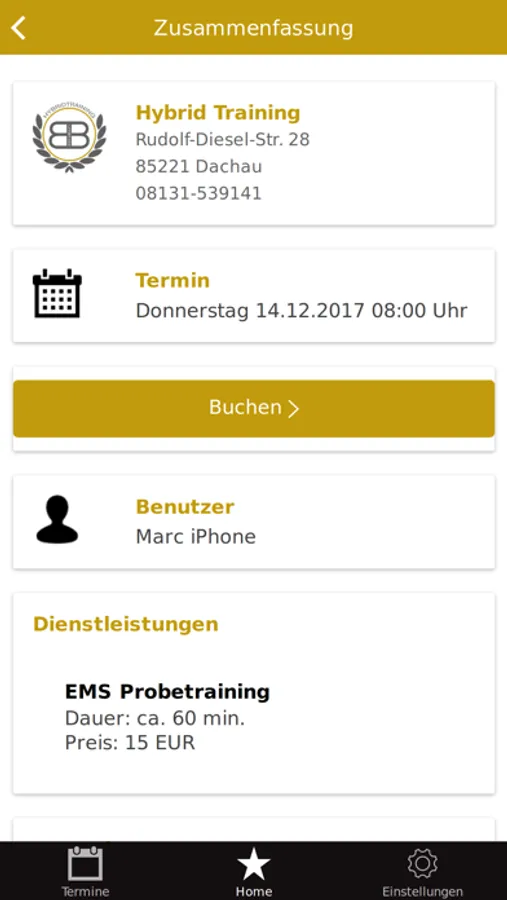 Die App zeigt dir die Details zu Hybrid Training und du kannst alle EMS Trainings einsehen. Als bestätigtes Mitglied kannst du dich direkt und einfach zum Training anmelden.