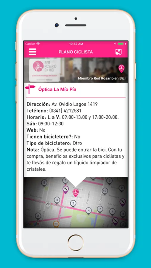 La aplicación móvil de Rosario en Bici, un proyecto de la ONG STS Rosario, ya está entre nosotros. La misma cuenta con información vital para todo ciclista urbano. Un mapa interactivo con información detallada de la ubicación, horarios y descripción de los bicicleterías, estacionamientos, negocios de la Red Rosario en Bici, ciclovías y bicisendas de la ciudad, y mucho más!