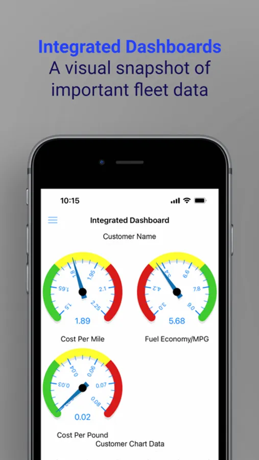 - Integrated Dashboard. (Integrated Customers & Aim Employees) Aim Navigator’s Integrated Dashboard provides users a visual snapshot of three vital fleet datapoints: Fuel Economy/MPG, Cost Per Stop and Cost Per Mile.