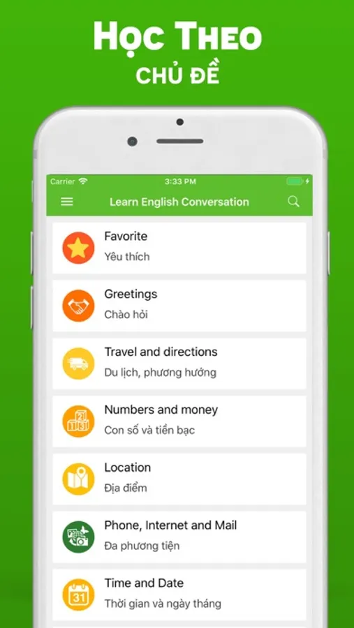 Học tiếng anh giao tiếp ứng dụng hỗ trợ học giao tiếp tiếp anh trực quan, hiệu quả, và không nhàm chán trên điện thoại thông minh. Ứng dụng giúp các bạn cải thiện khả năng giao tiếp tiếng anh, hỗ trợ cho việc học tập, nghiên cứu, du lịch, du học, xuất khẩu lao động...
