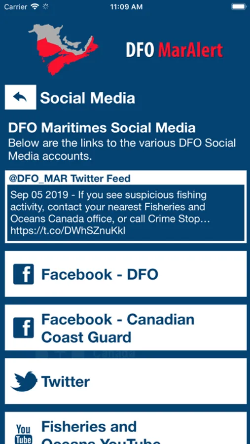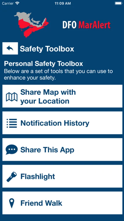 With DFO MarAlert, be quickly alerted to emergency situations that affect Fisheries and Oceans Canada or reach out directly to security services when you need help. Additional features include easy access to safety resources, a safety toolbox, and more.