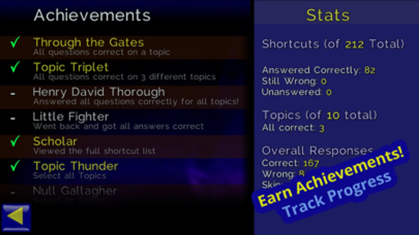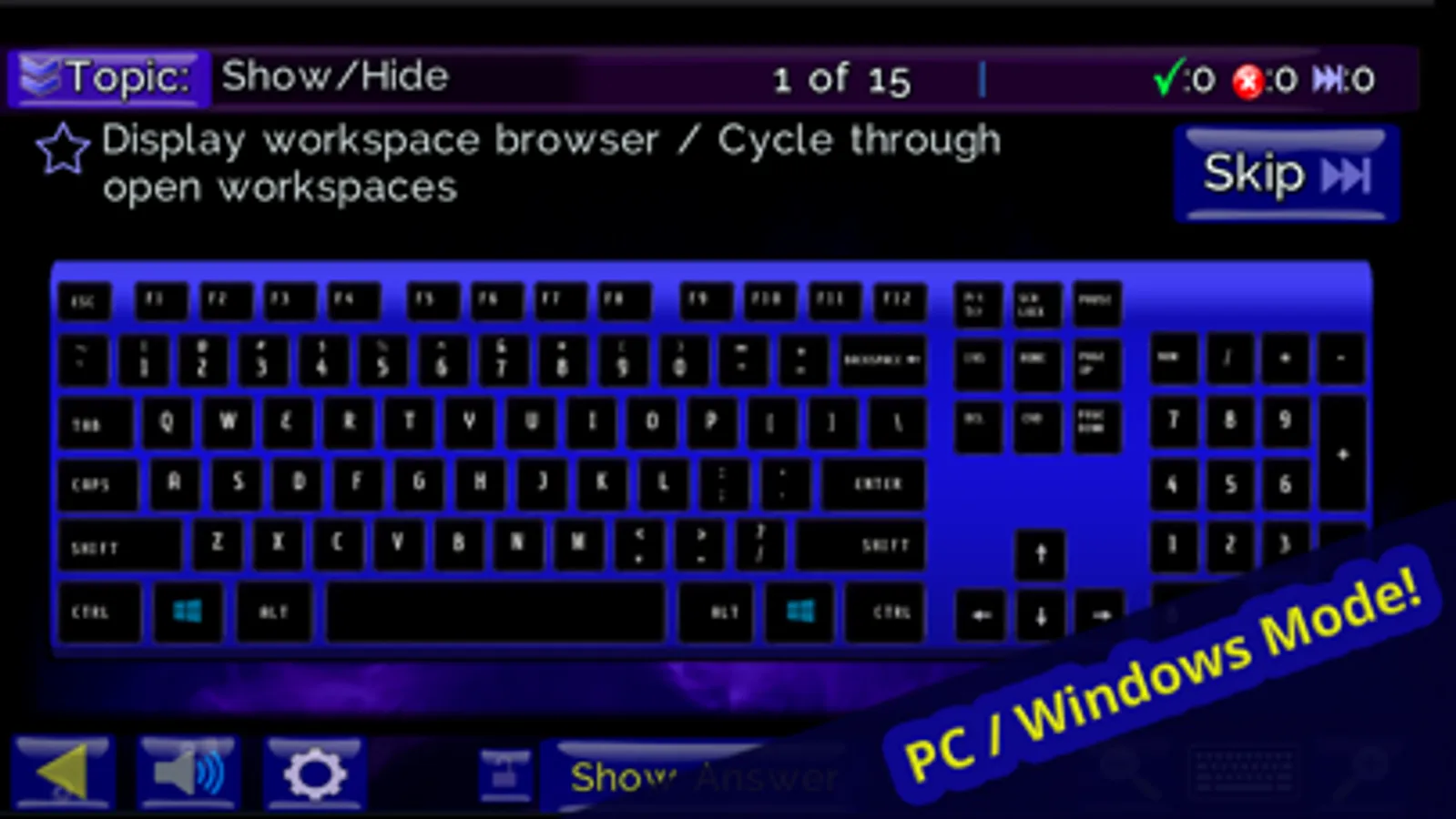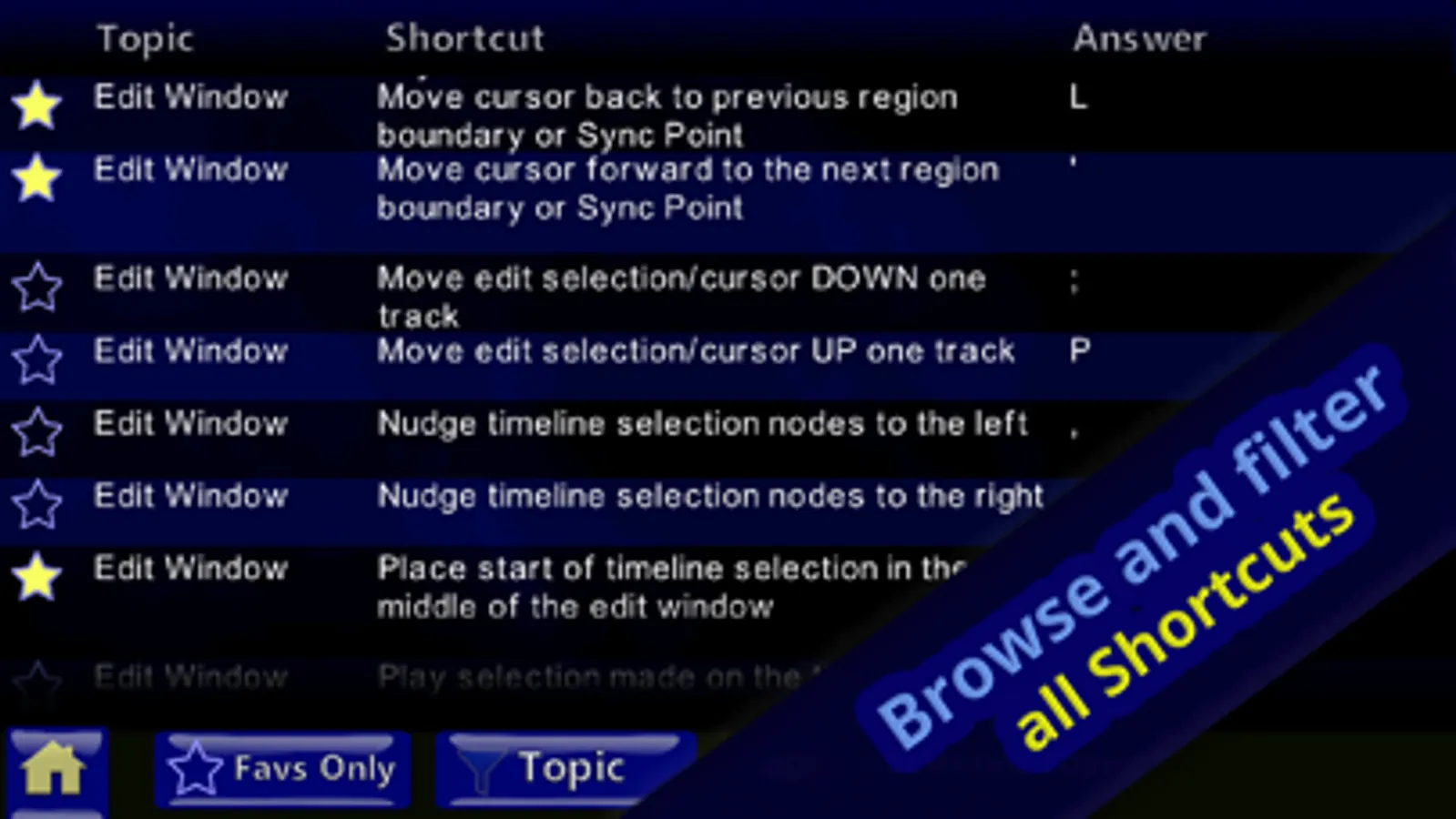 - Browse all shortcuts outside of the quiz and filter by topic.