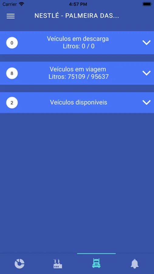 4. Verificar a situação dos veículos da planta: em descarga, em viagem ou disponível.