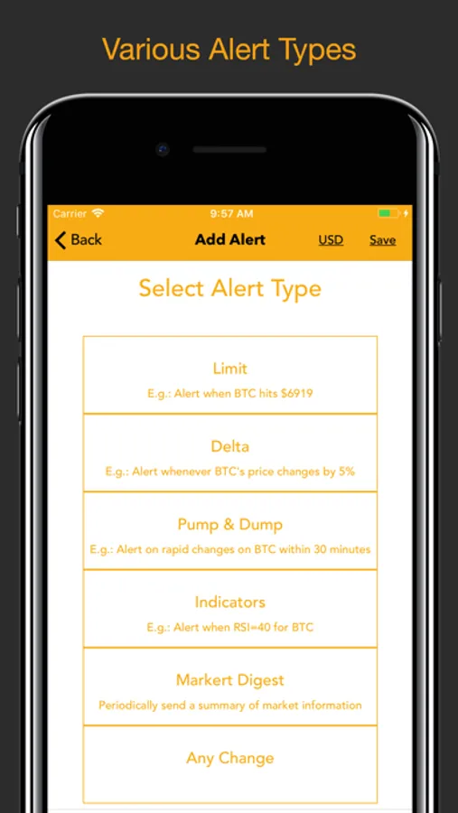 - Delta: Recurring alerts whenever the price, market cap, or volume of any coin changes by a certain percentage