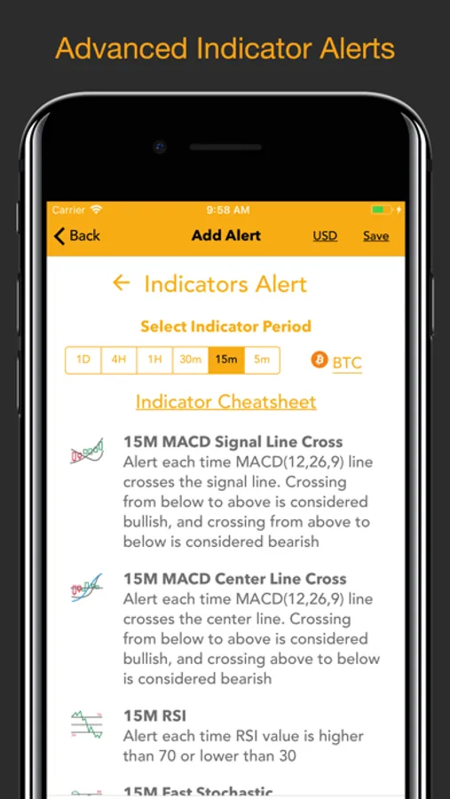 - Indicator Cheatsheet: Quickly learn about indicators by reading our 'Indicator Cheatsheet' from the left side menu