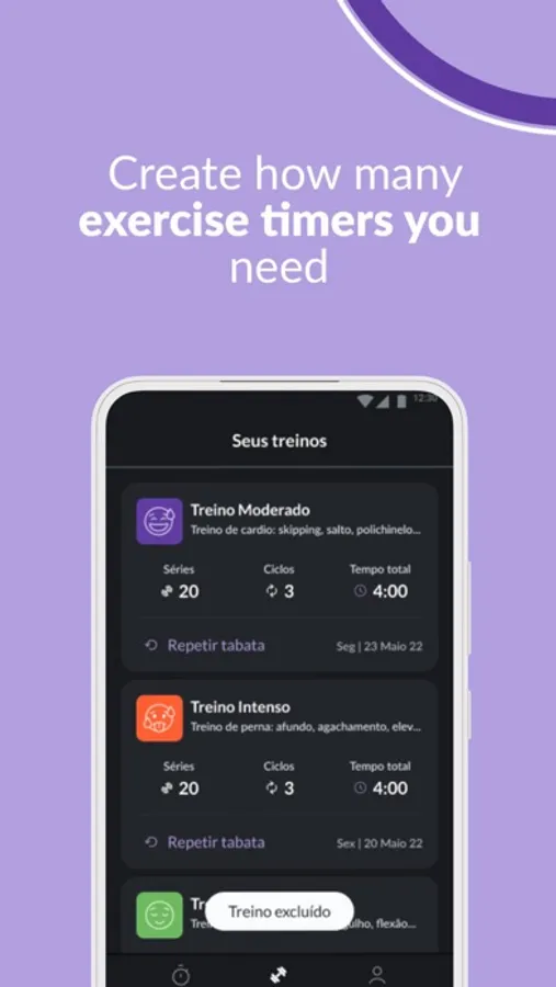 The Tabata Timer is a timer for the practice of workouts programmed in the tabata protocol, which consists of the practice of high-intensity and short-duration interval physical activities, increasing metabolism and promoting greater caloric expenditure.