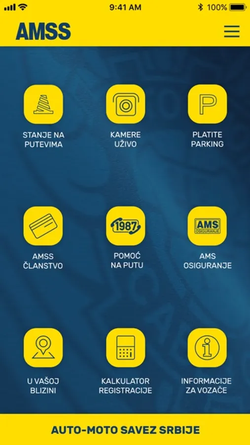 AMSS mobilna aplikacija omogućava Vam brzu komunikaciju sa Operativnim centrom AMSS kako biste dobili neophodnu pomoć na putu, popravke, šlepovanje, ali i savet i informacije. Više ne morate telefonski objašnjavati gde se nalazite, dovoljno je da putem aplikacije pošaljete sms jednim klikom našem operativnom centru sa koordinatama i u najkraćem roku pomoć će stići do Vas. Stanje na putevima Vam je od sada uvek dostupno na mapi koja obuhvata sve informacije koje Vam mogu biti od značaja za planiranje vaše rute ili puta u Srbiji, kao i video, uživo kamere, sa 18 najferkevntnijih saobraćajnica, za sada samo u Beogradu. Sa opcijom „u Vašoj blizini“ jednostavno će te pronaći vama najbliže mesto za uslugu ili dokument koji vam je potreban. Aplikacija vam daje odgovore na pitanja kako i gde da izvadite neophodna međunarodna vozačka dokumenta, šta su TAG uređaji, koliko koštaju, kako da ostvarite popuste i gde možete da ih kupite. Putem naše aplikacije možete platiti parking u svim zonama I svim gradovima Srbije.