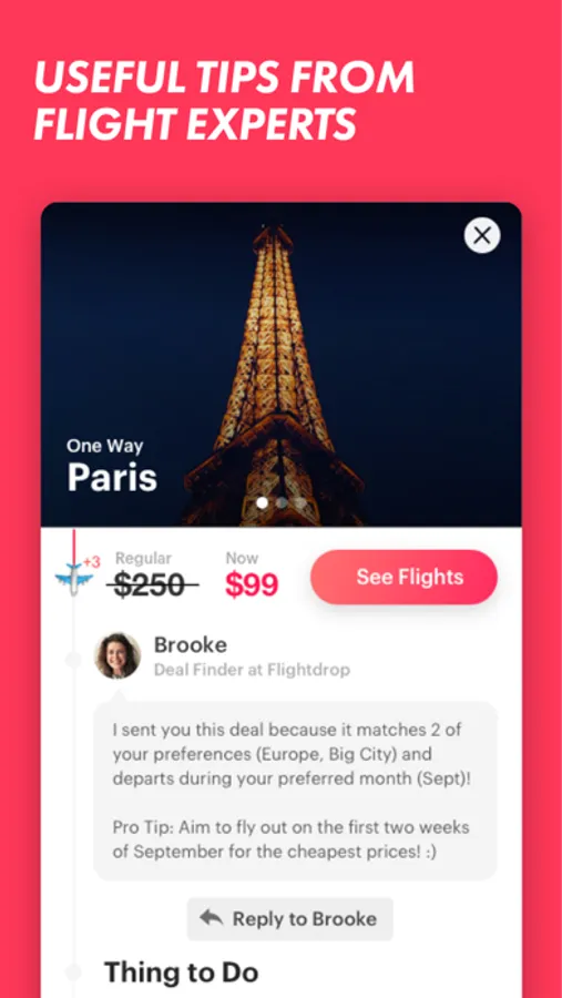 * Personalized Deals: Every traveler has a unique taste, so we send different deals for every user. Tell us what kind of trips you’re looking for and we’ll only send you deals that you might like.
