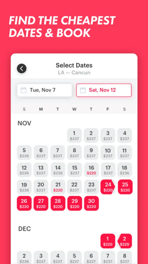 * Book at the Cheapest Price: Explore flight options directly within the app and try different dates on our Price Calendar to find the cheapest dates to fly!