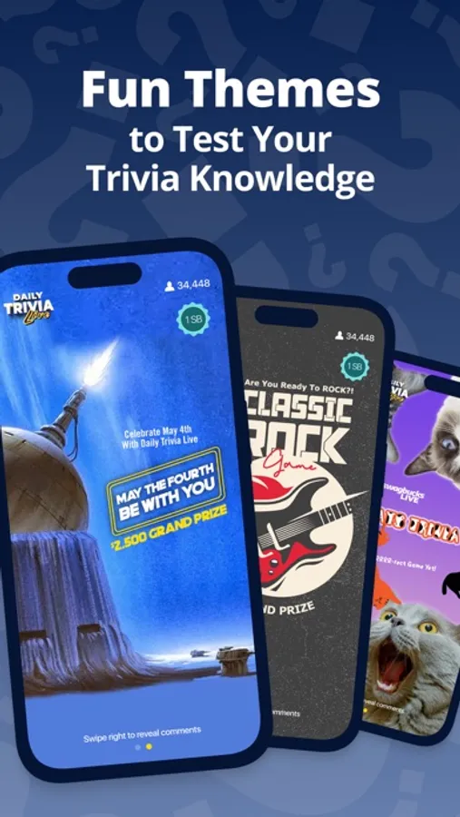 1. Join the LIVE trivia game show and answer 10 daily questions. Play trivia with players from all over the world. Share a mega prize pot with other players and score special SB bonuses. All the excitement of real-time, live-stream play.