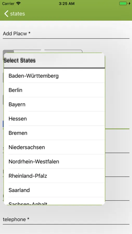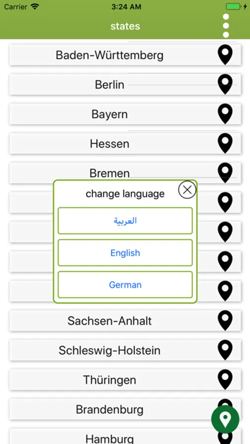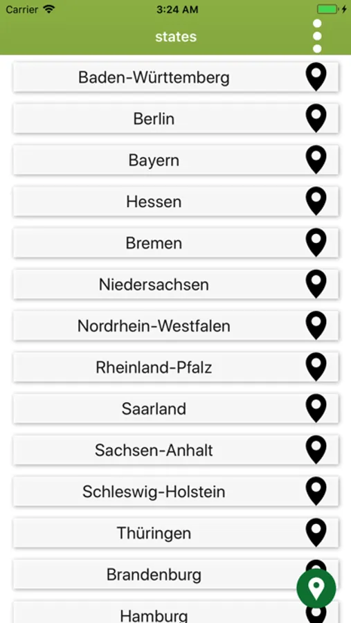 التطبيق مصنف على شكل فئات . مقاطعات المانية ال 16 عشرة و وبعدها المدن لكل مقاطعة .