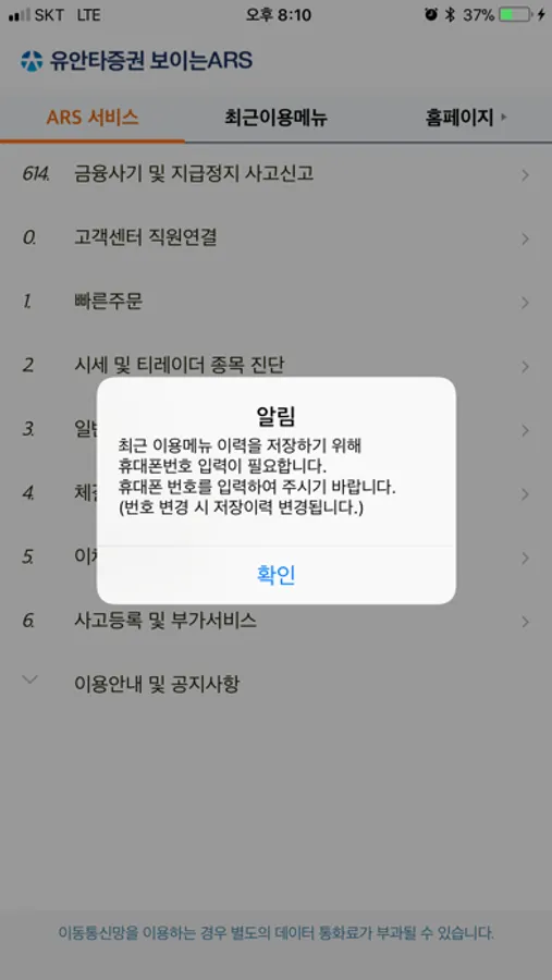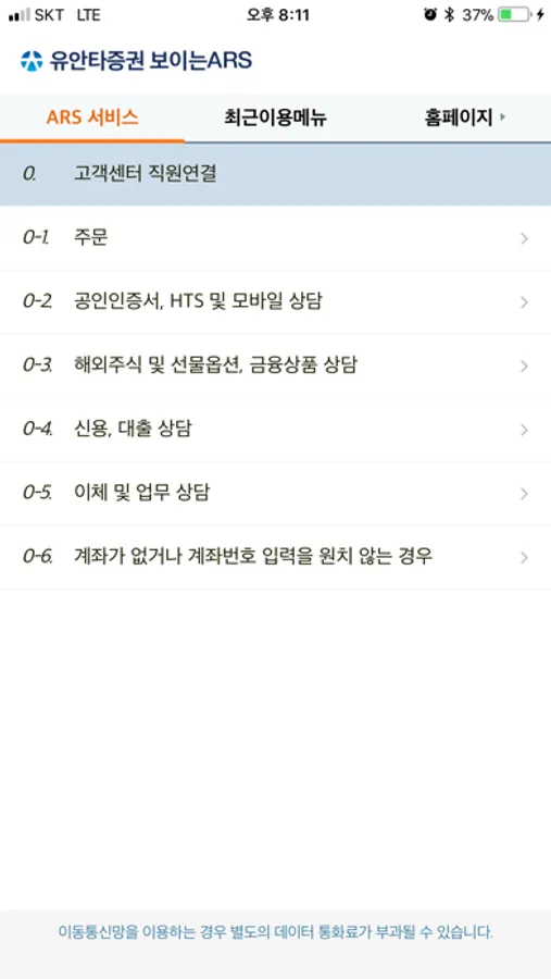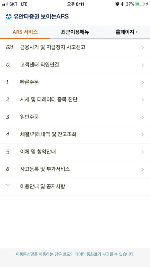 1. 보이는ARS 이용 시 이동통신망을 이용하는 경우 별도의 데이터 통화료가 부과될 수 있습니다.