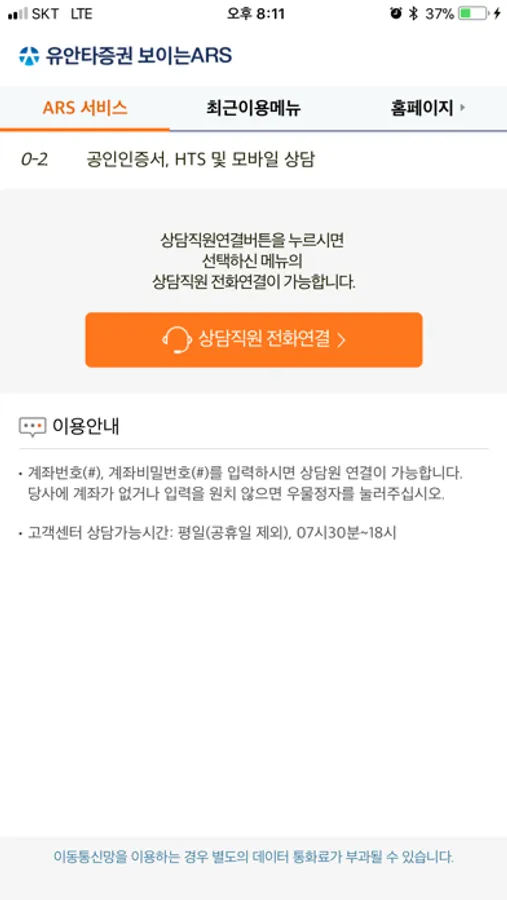 1. 유안타증권 고객센터 ARS의 메뉴를 화면으로 보면서 선택할 수 있어 원하는 메뉴를 보다 빠르고 편리하게 이용할 수 있습니다.