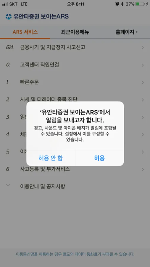유안타증권 보이는 ARS는 ARS서비스를 스마트폰 화면으로 제공받아 ARS메뉴를 선택 할 수 있는 서비스입니다.